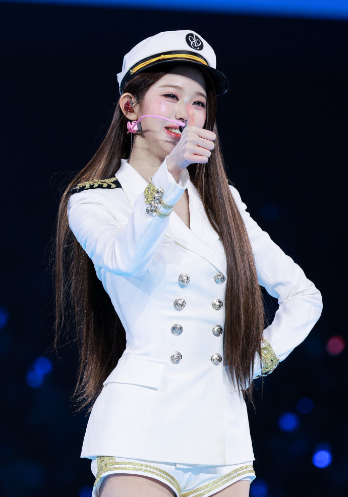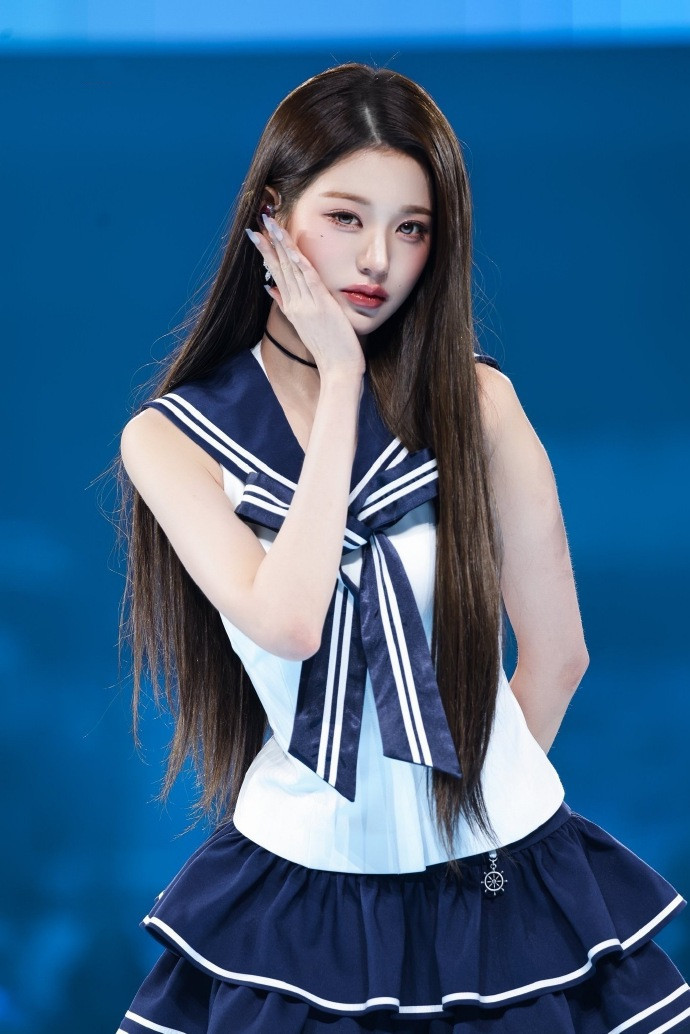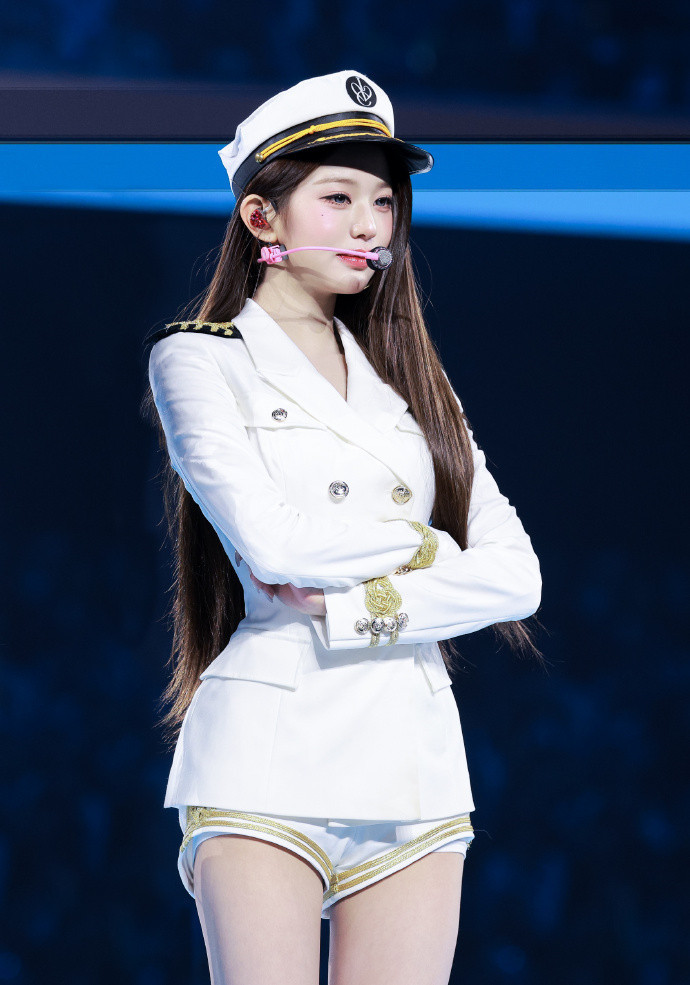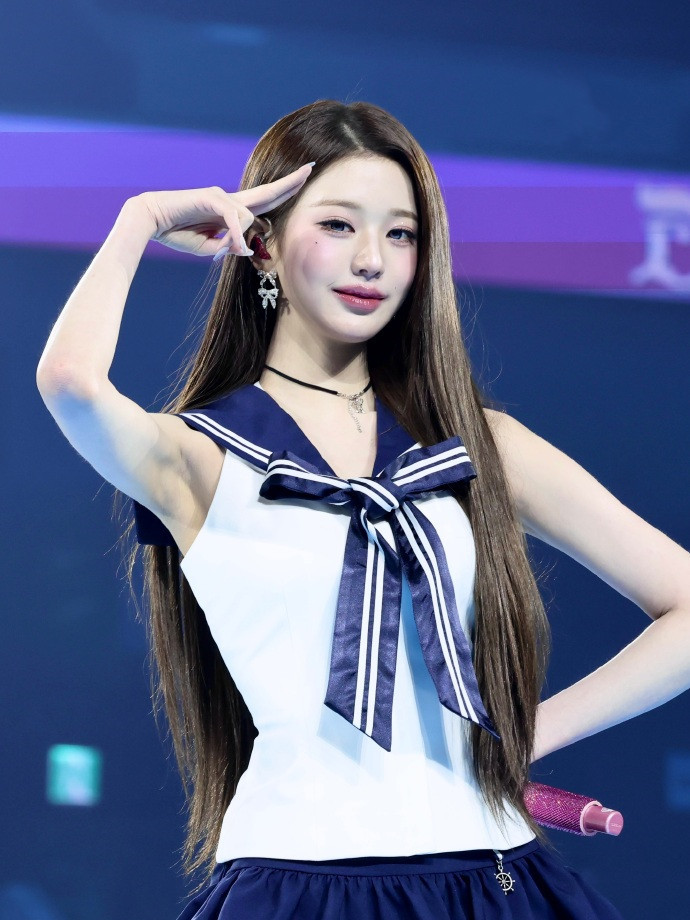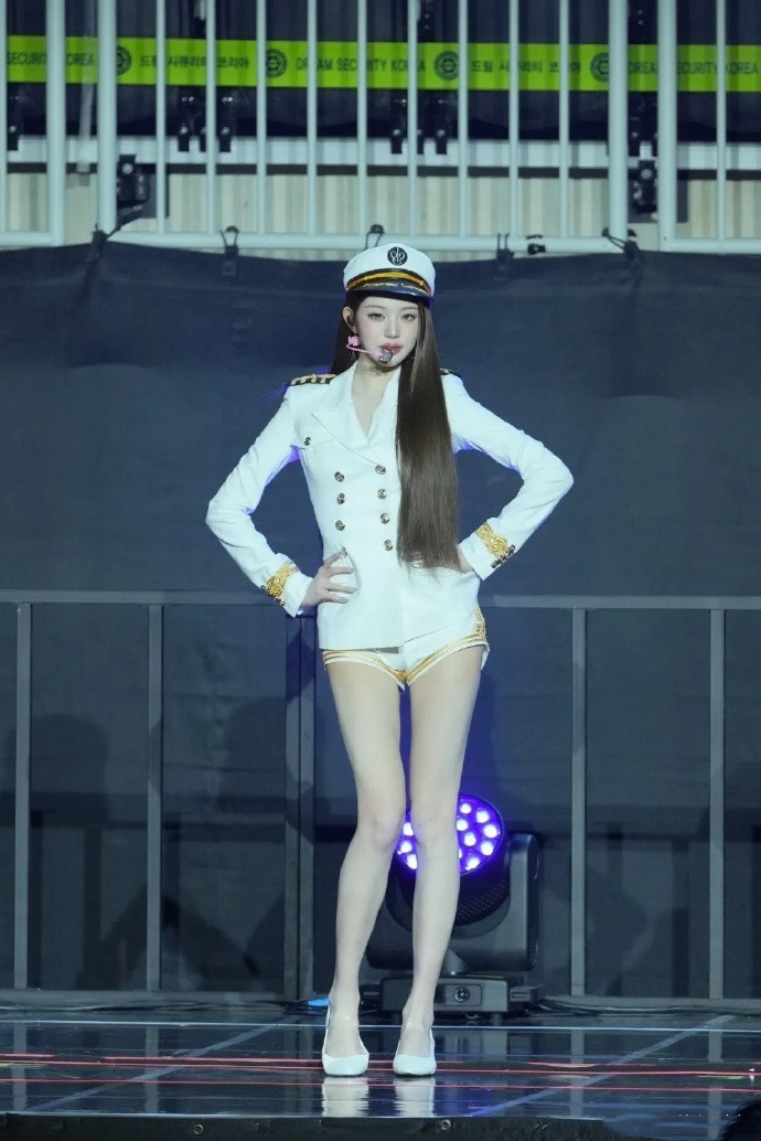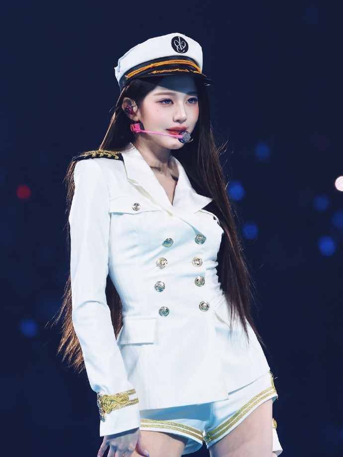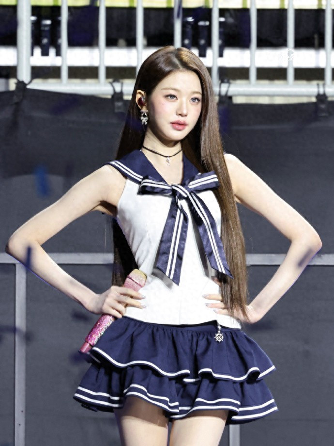 当 “挑东说念主” 的水手服遇上张元英,便完成了一场从校园感单品到舞台高定的前卫进化。这套蓝白水手服套装,本是带着青涩校园感的维捏单品,却被她消化成兼具仙女感与贵气感的舞台造型,完好意思诠释了什么是顶级 “前卫消化力”。