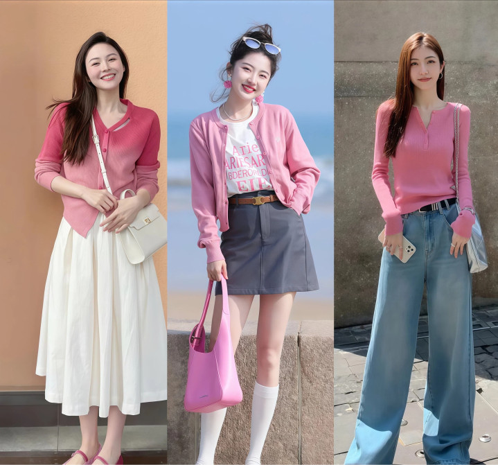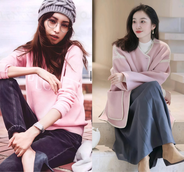 棉质、古道、羊毛这类有厚度有质料的面料才配得上粉色,穿上身贴合但不紧绷,面料的垂坠能把粉色的质料衬得很到位,你去店里挑粉色衣服的时辰,一定要上手摸面料再作念决定。