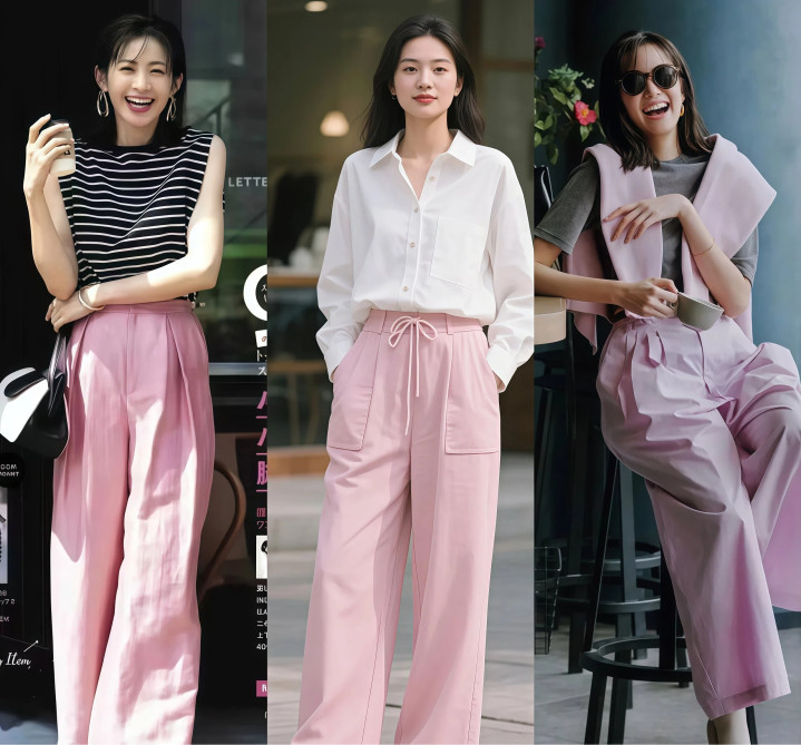 蓝色和粉色放在全部,那种剖释感太颜面了。上头穿一件浅蓝色T恤或者蓝白条纹衬衫,底下配粉色阔腿裤,这个配色组合独特合适春天的天气和爽直,看着就让东谈主情态好。