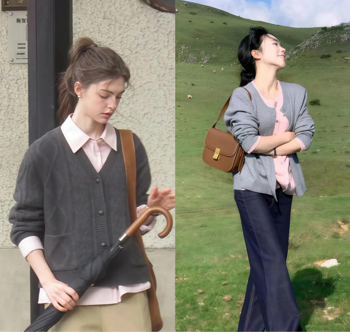 具体穿的时辰,不错试试一件玄色古道开衫搭粉色衬衫打底,粉色内搭外面套一件玄色小西装也很颜面,两种标的不错左证本日场面摆脱切换,皆禁闭易出错。
