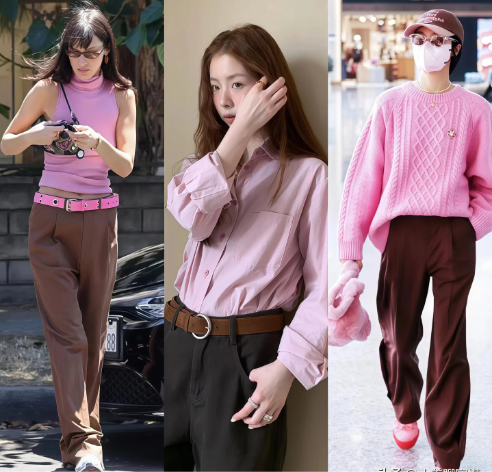粉色配白色整套剖释干净,合适春夏季间出街或者拍照。但如若你想穿得更利落更纯属,玄色搭粉色更值得试,玄色能压住粉色的甜度让整套搭配千里下来,作风变得干练有质感。