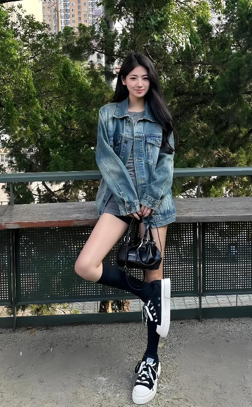 长度遮臀的牛仔外衣,还不错玩转“下衣失散”的穿法,下身配短裤或者短裙都很漂后有个性。再借助小腿袜修饰腿型,就算你的腿型不直、显腿粗凯发娱乐(K8)官方网站,也皆备不是问题。