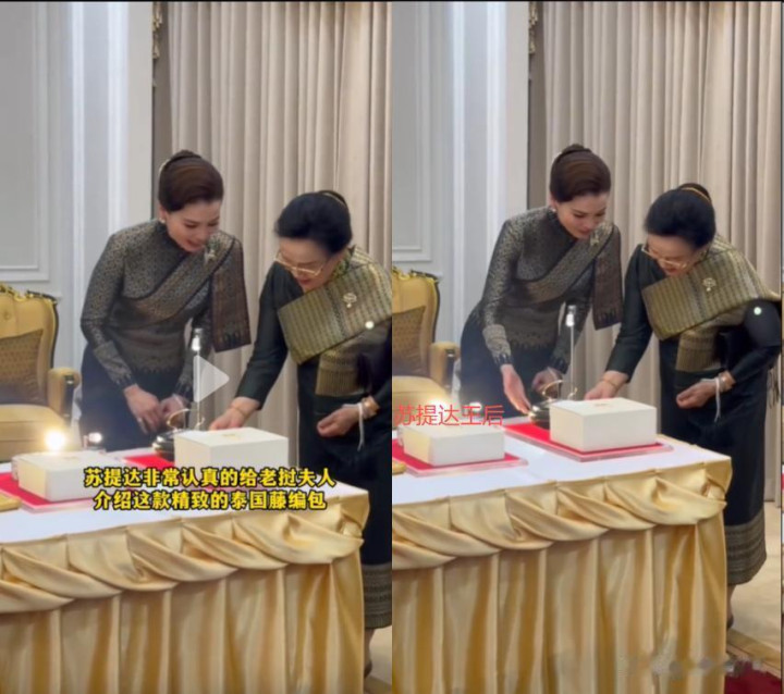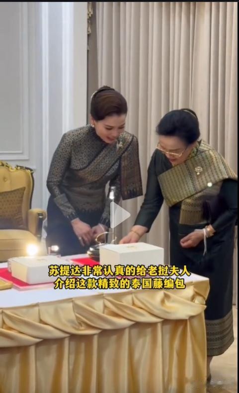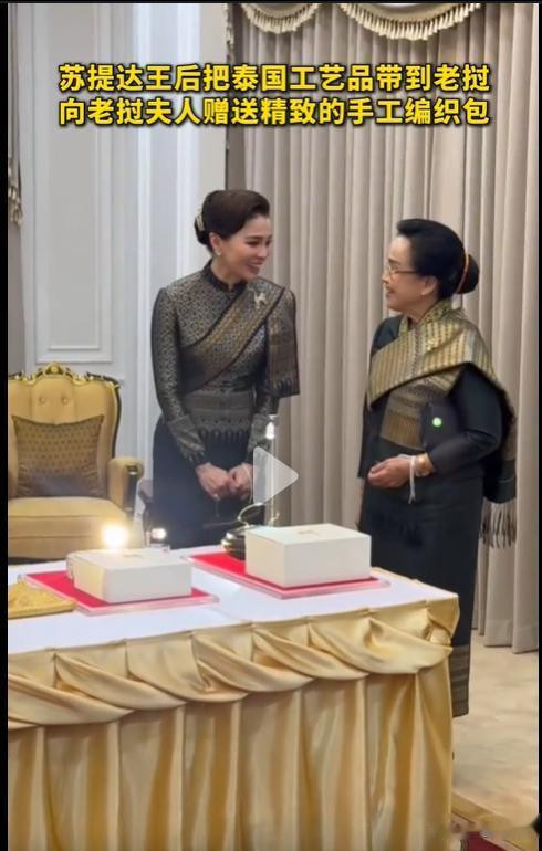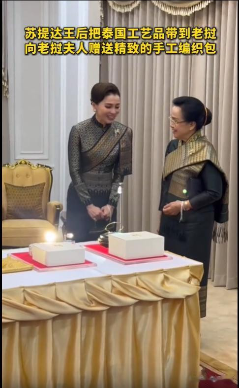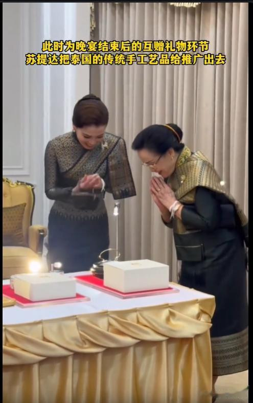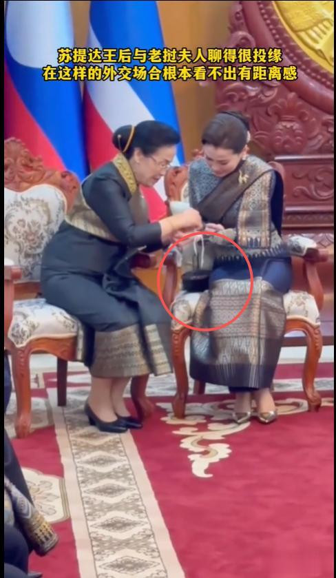 在接待晚宴上,苏提达王后还全心挑选了一只,赠予了老挝第一夫东说念主。