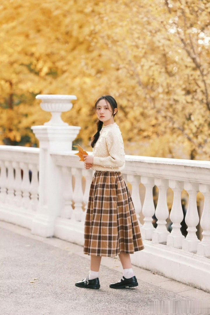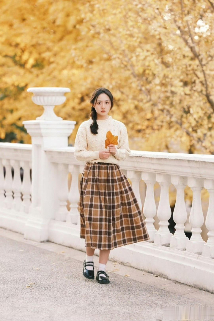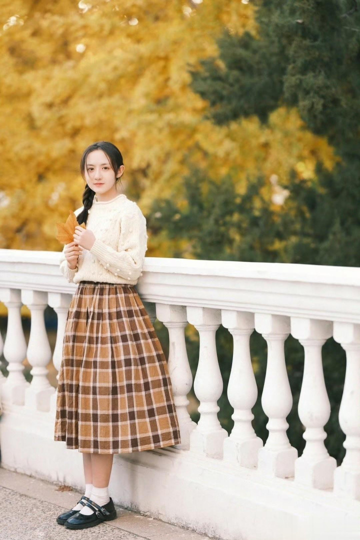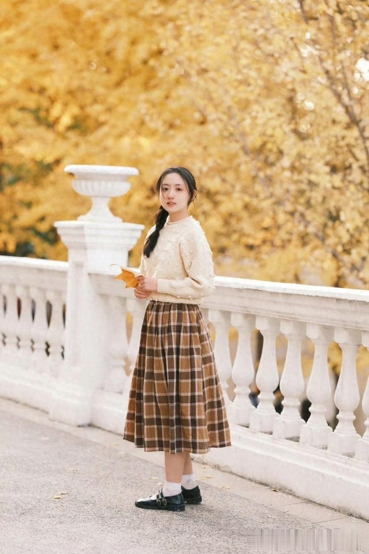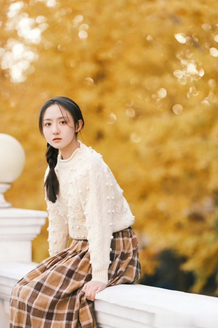 凯发官网 张格, 白毛衣格子裙, 芳华甜好意思的麻花辫青娥。