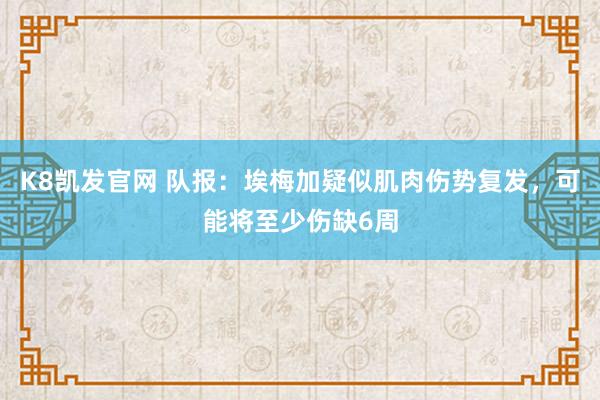 K8凯发官网 队报:埃梅加疑似肌肉伤势复发,可能将至少伤缺6周