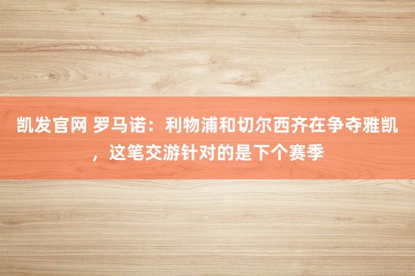 凯发官网 罗马诺:利物浦和切尔西齐在争夺雅凯,这笔交游针对的是下个赛季
