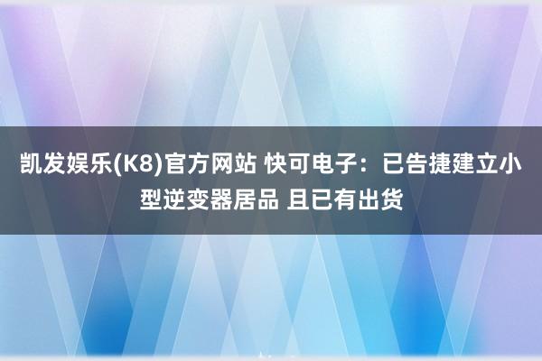 凯发娱乐(K8)官方网站 快可电子:已告捷建立小型逆变器居品 且已有出货