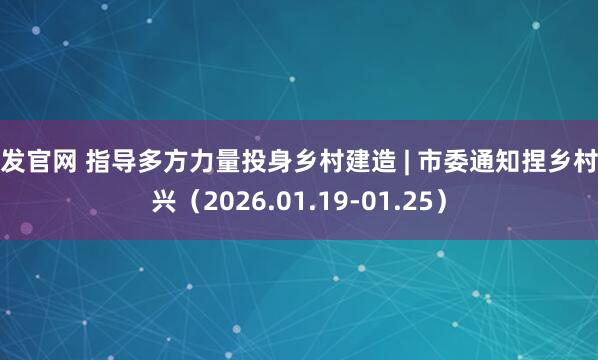 凯发官网 指导多方力量投身乡村建造 | 市委通知捏乡村振兴(2026.01.19-01.25)