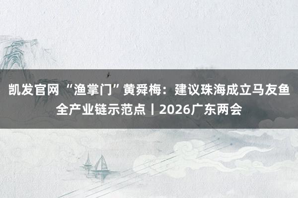 凯发官网 “渔掌门”黄舜梅:建议珠海成立马友鱼全产业链示范点丨2026广东两会