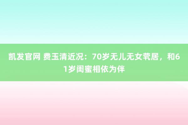 凯发官网 费玉清近况:70岁无儿无女茕居,和61岁闺蜜相依为伴