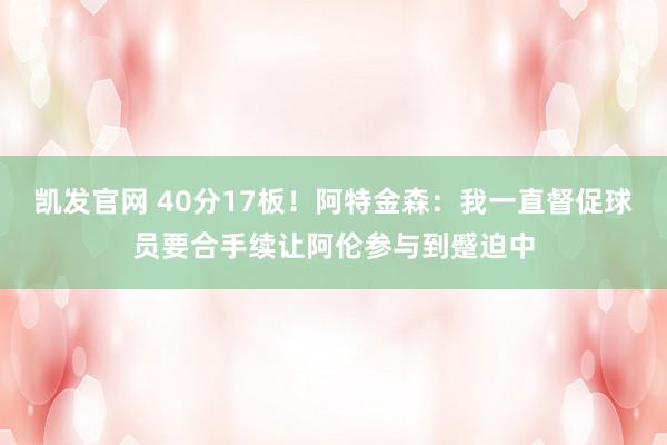 凯发官网 40分17板!阿特金森:我一直督促球员要合手续让阿伦参与到蹙迫中