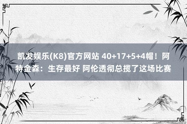 凯发娱乐(K8)官方网站 40+17+5+4帽!阿特金森:生存最好 阿伦透彻总揽了这场比赛