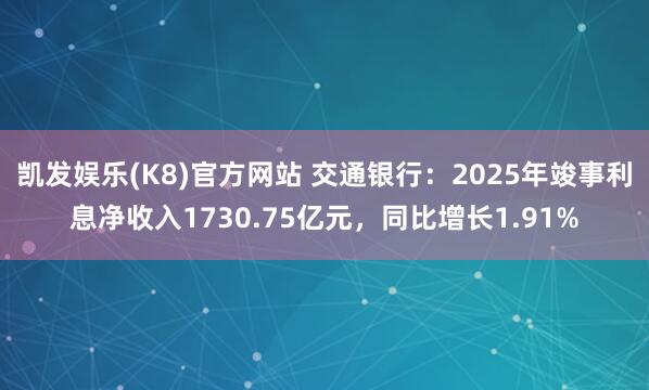 凯发娱乐(K8)官方网站 交通银行:2025年竣事利息净收入1730.75亿元,同比增长1.91%